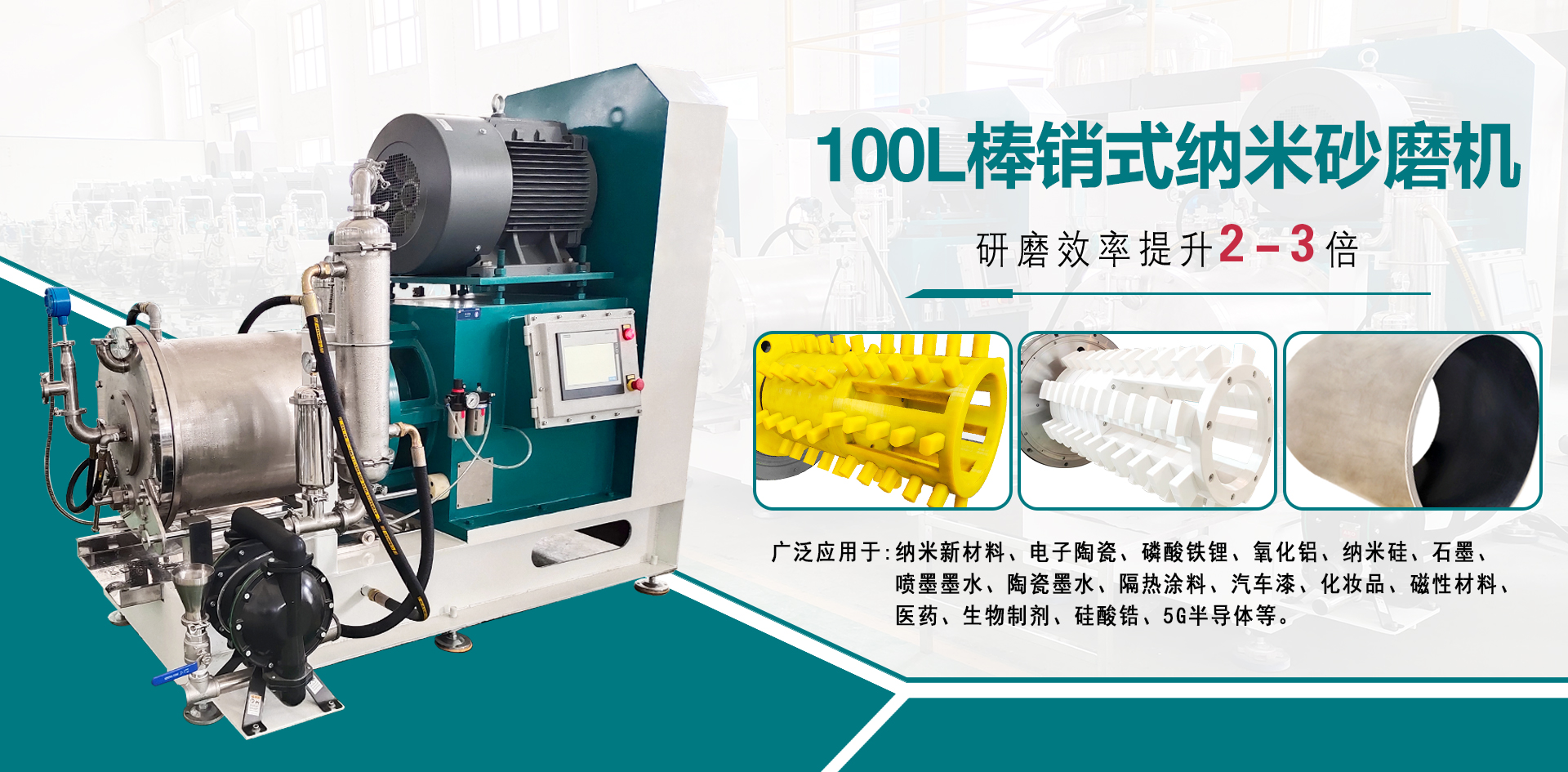 工業級棒銷動態(tài)砂磨機廣泛應用于微米級亞微米級、納米級的中高粘度物料的研磨,動靜環(huán)間隙出料,棒銷轉子結構滿足不同尺寸、不同研磨細度以及不同研磨工藝的生產需求 臥式砂磨機,適用于對研磨精度要求高的化工物料,連續(xù)封閉式高效率濕式研磨分散。 輸送泵有氣動隔膜泵和圓弧泵、刮板泵研磨介質為氧化錯珠,根據物料及細度要求選擇介質大小